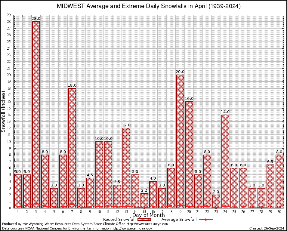 MIDWEST (486195) April Average and Extreme Daily Snowfall AMounts (1939-2024) To index page for MIDWEST