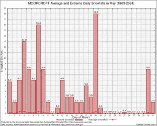 Record Extreme and Average Daily Snowfall (1903-2024)