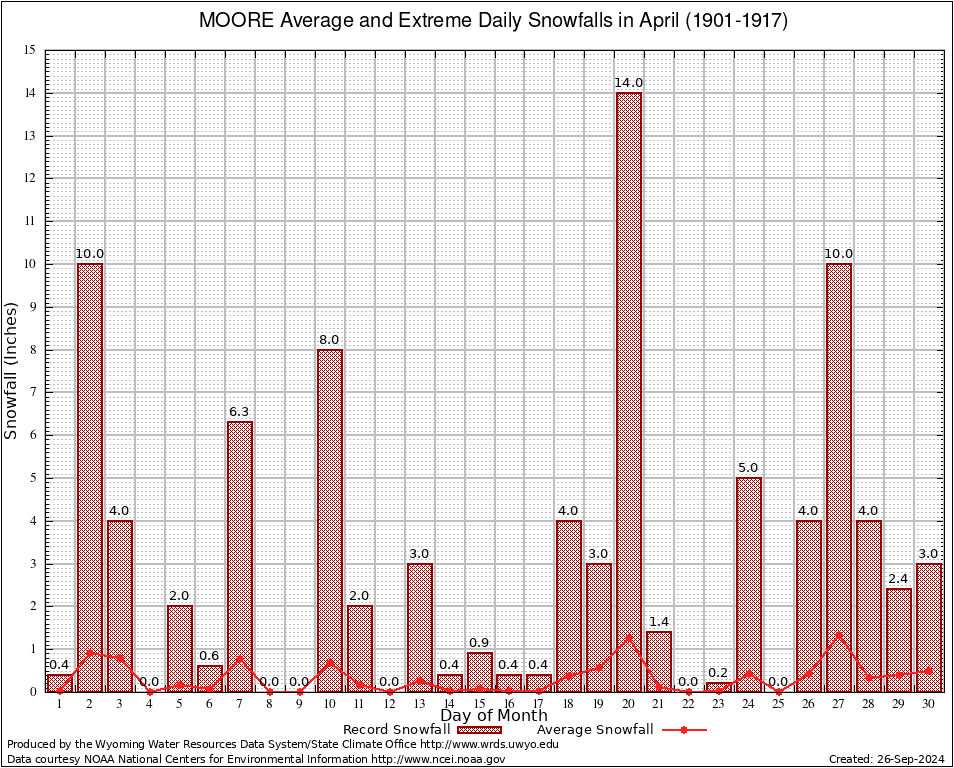 MOORE (486422) April Average and Extreme Daily Snowfall AMounts (1901-1917) To index page for MOORE