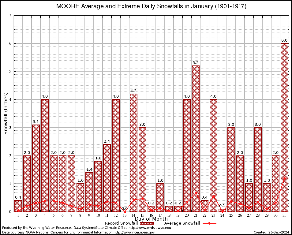 MOORE (486422) January Average and Extreme Daily Snowfall AMounts (1901-1917) To index page for MOORE