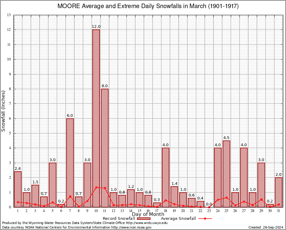 MOORE (486422) March Average and Extreme Daily Snowfall AMounts (1901-1917) To index page for MOORE