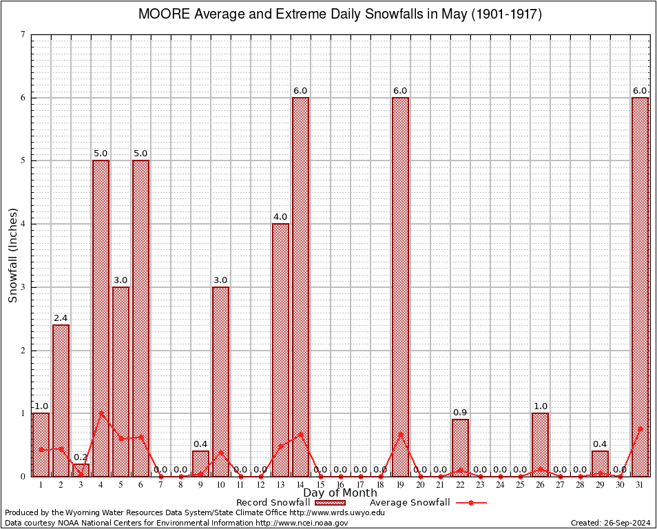 MOORE (486422) May Average and Extreme Daily Snowfall AMounts (1901-1917) To index page for MOORE