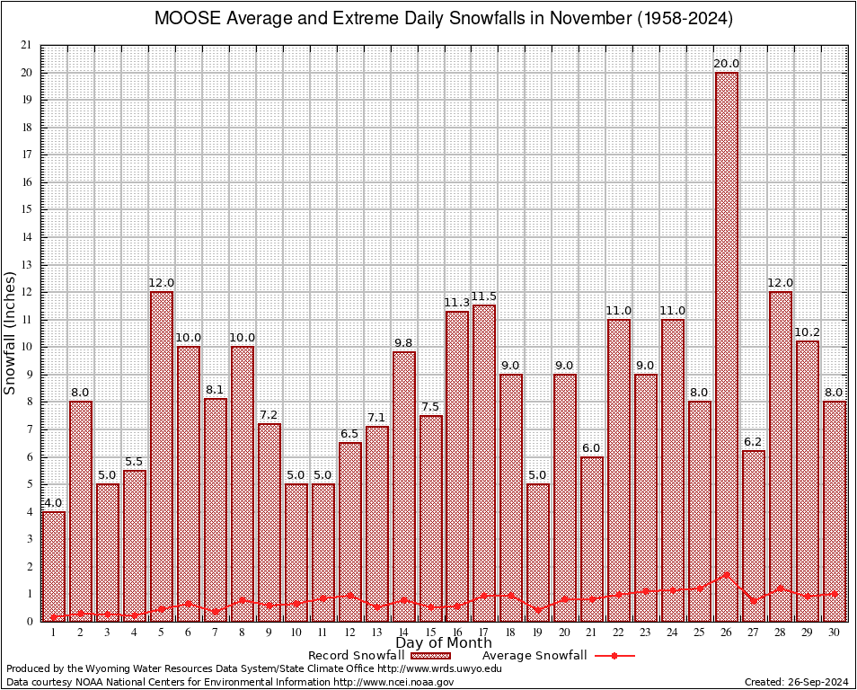 MOOSE (486428) November Average and Extreme Daily Snowfall AMounts (1958-2024) To index page for MOOSE