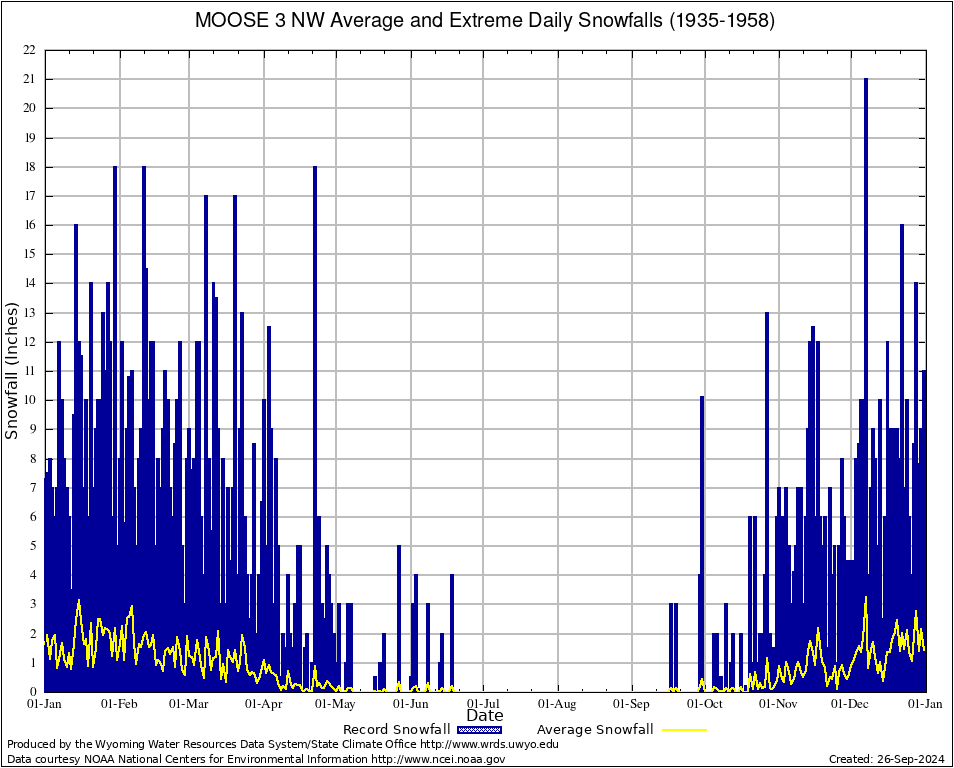 Annual Average and Extreme Daily Snowfall AMounts (1935-1958)