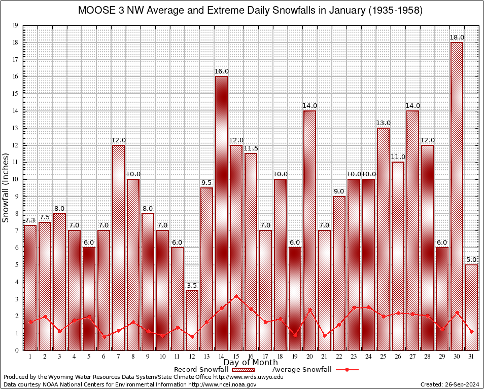 January Average and Extreme Daily Snowfall AMounts (1935-1958)