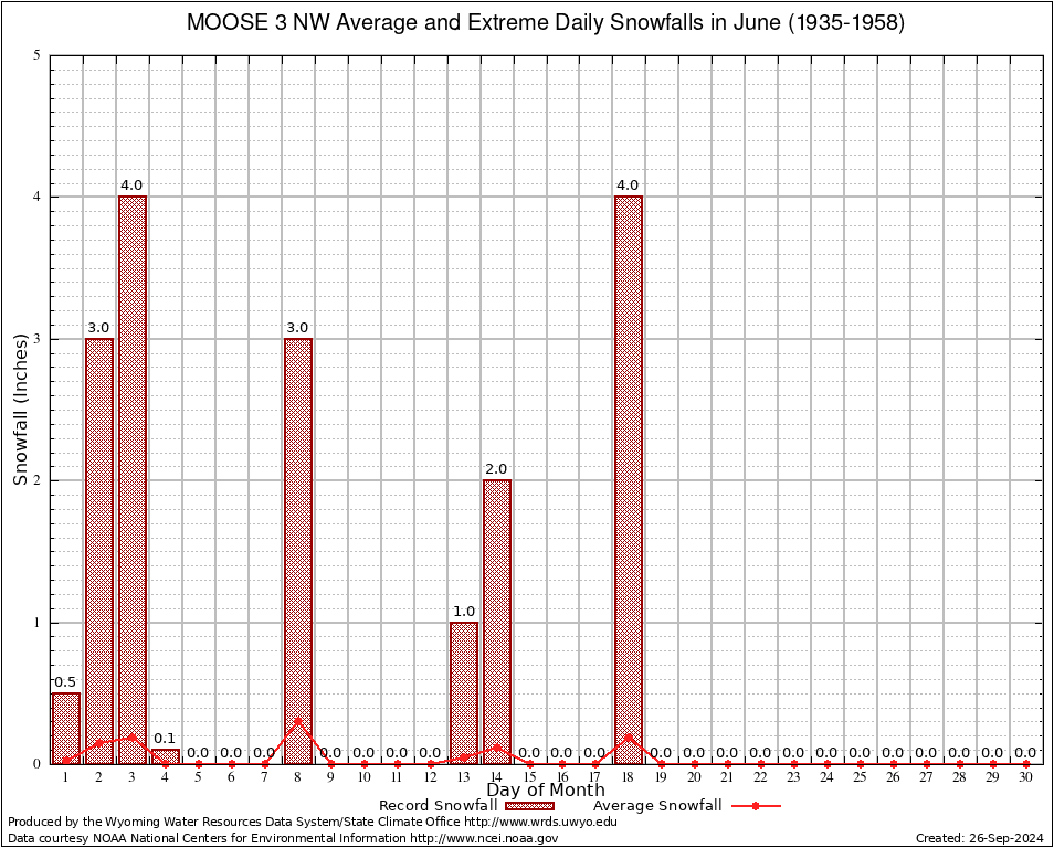 June Average and Extreme Daily Snowfall AMounts (1935-1958)