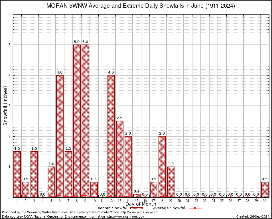 June Average and Extreme Daily Snowfall AMounts (1911-2024)