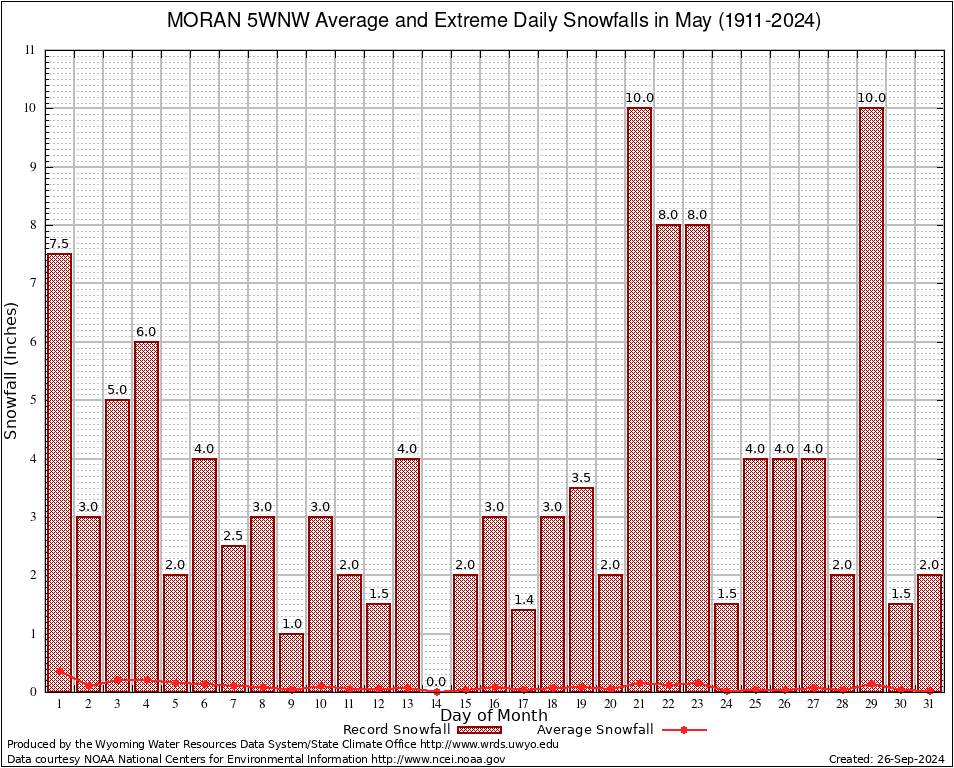 May Average and Extreme Daily Snowfall AMounts (1911-2024)