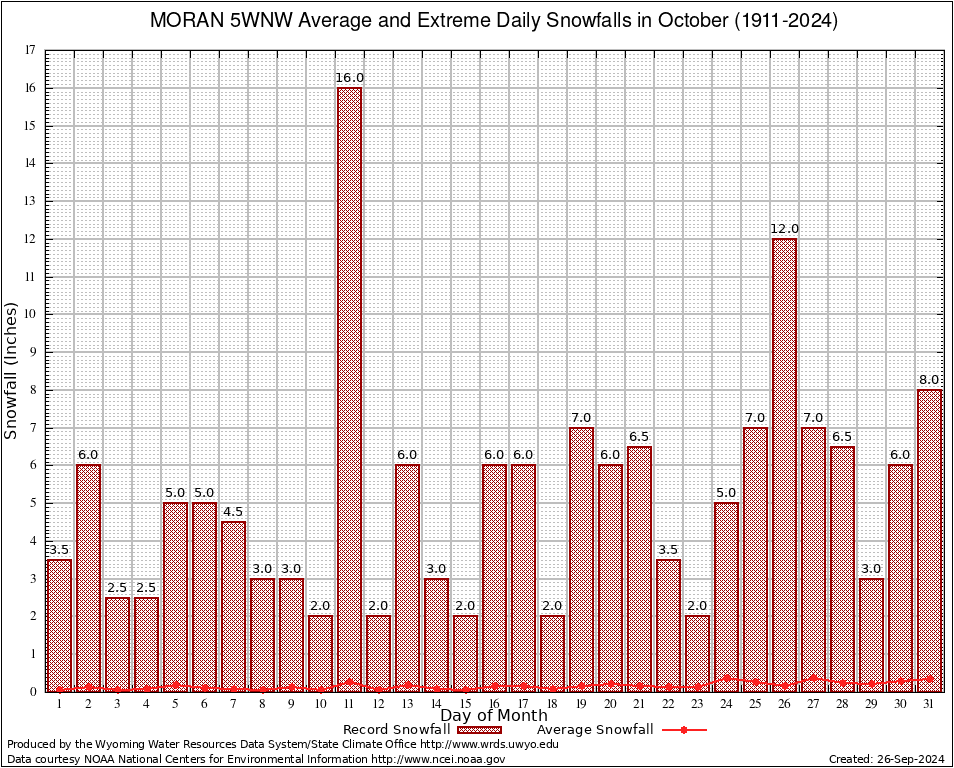 October Average and Extreme Daily Snowfall AMounts (1911-2024)