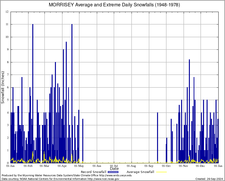 MORRISEY (486450) Annual Average and Extreme Daily Snowfall AMounts (1948-1978) To index page for MORRISEY