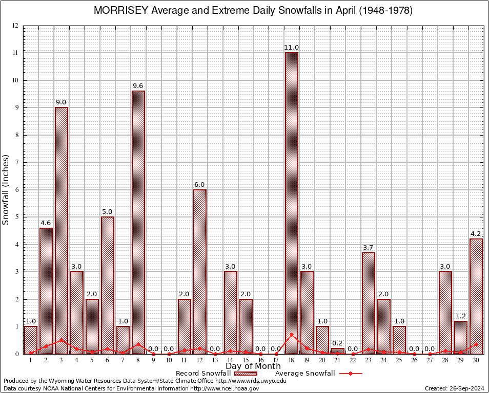 MORRISEY (486450) April Average and Extreme Daily Snowfall AMounts (1948-1978) To index page for MORRISEY