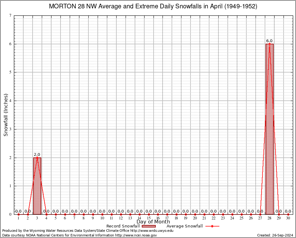 April Average and Extreme Daily Snowfall AMounts (1949-1952)