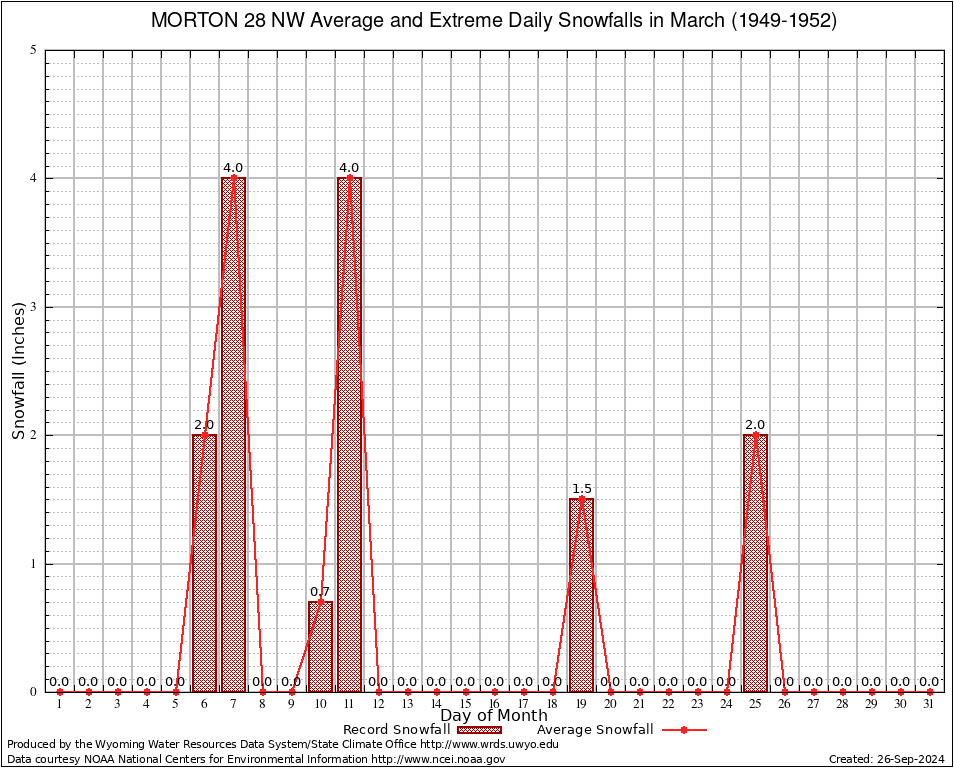 March Average and Extreme Daily Snowfall AMounts (1949-1952)