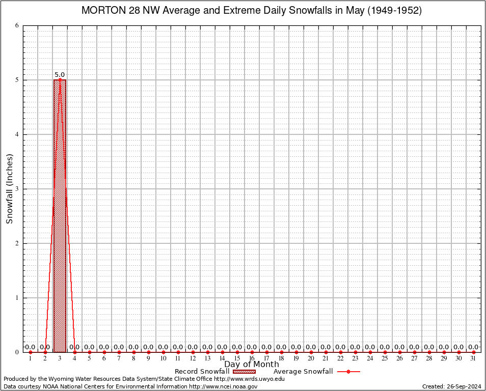 May Average and Extreme Daily Snowfall AMounts (1949-1952)