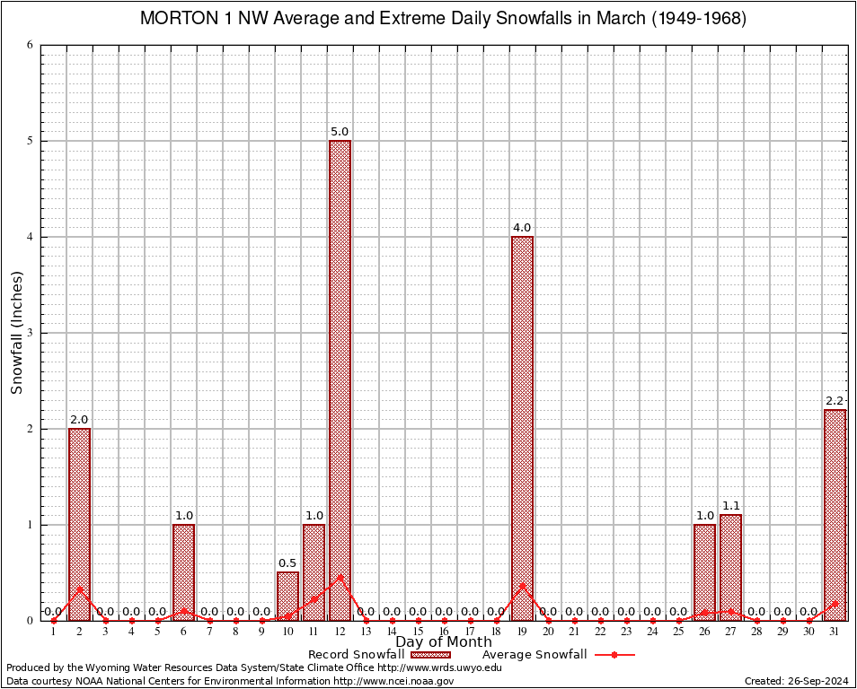 March Average and Extreme Daily Snowfall AMounts (1949-1968)