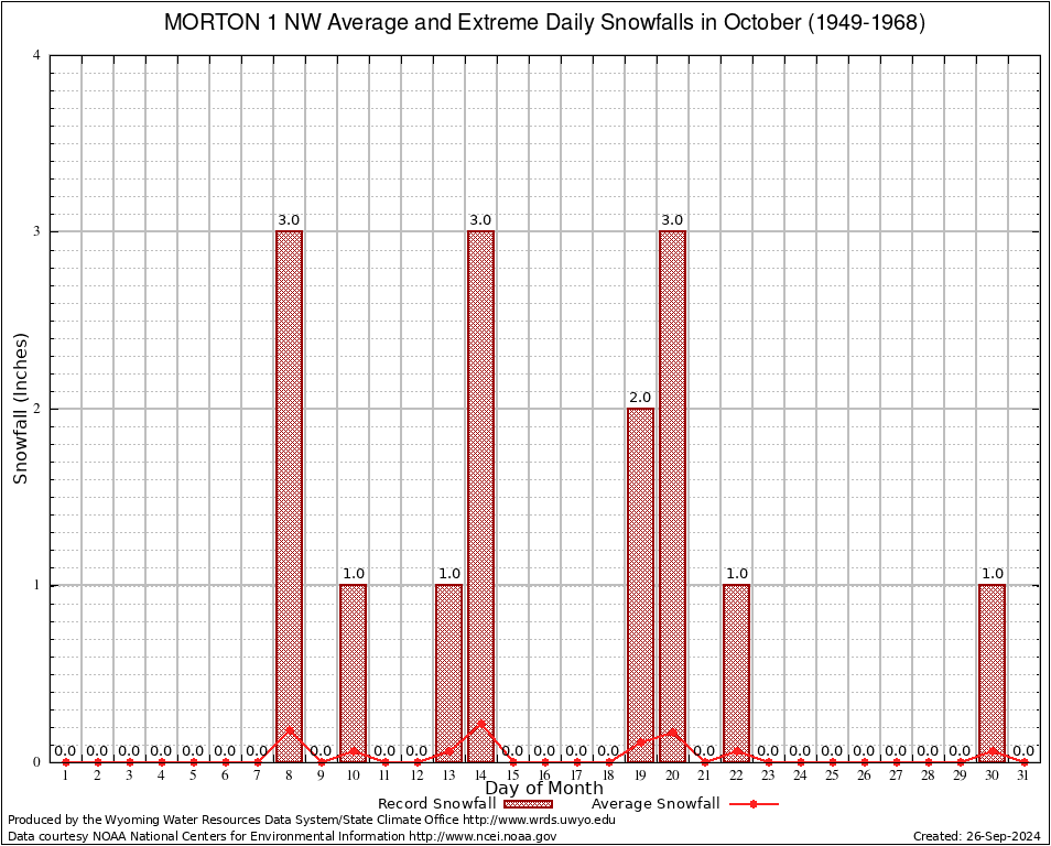 October Average and Extreme Daily Snowfall AMounts (1949-1968)
