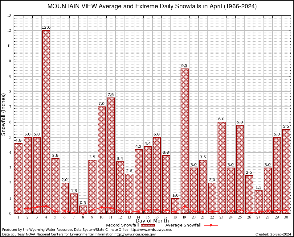April Average and Extreme Daily Snowfall AMounts (1966-2024)