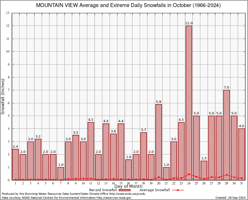 October Average and Extreme Daily Snowfall AMounts (1966-2024)