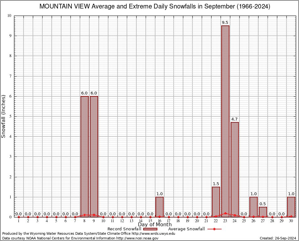 September Average and Extreme Daily Snowfall AMounts (1966-2024)