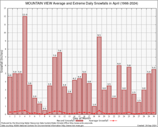 Record Extreme and Average Daily Snowfall (1966-2024)