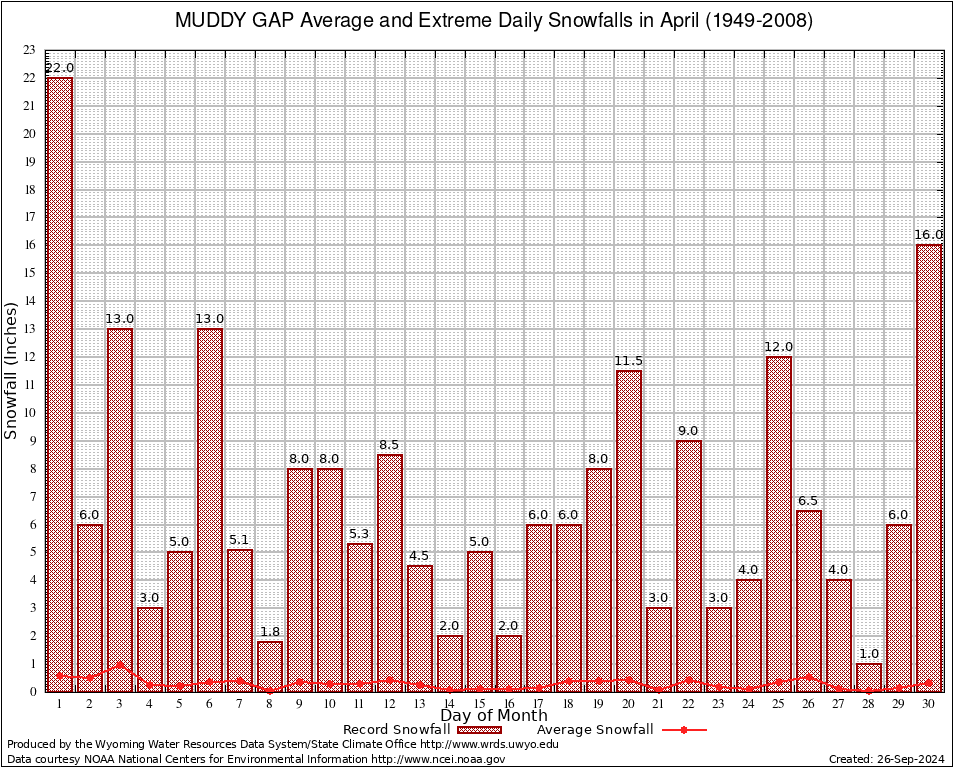 April Average and Extreme Daily Snowfall AMounts (1949-2008)