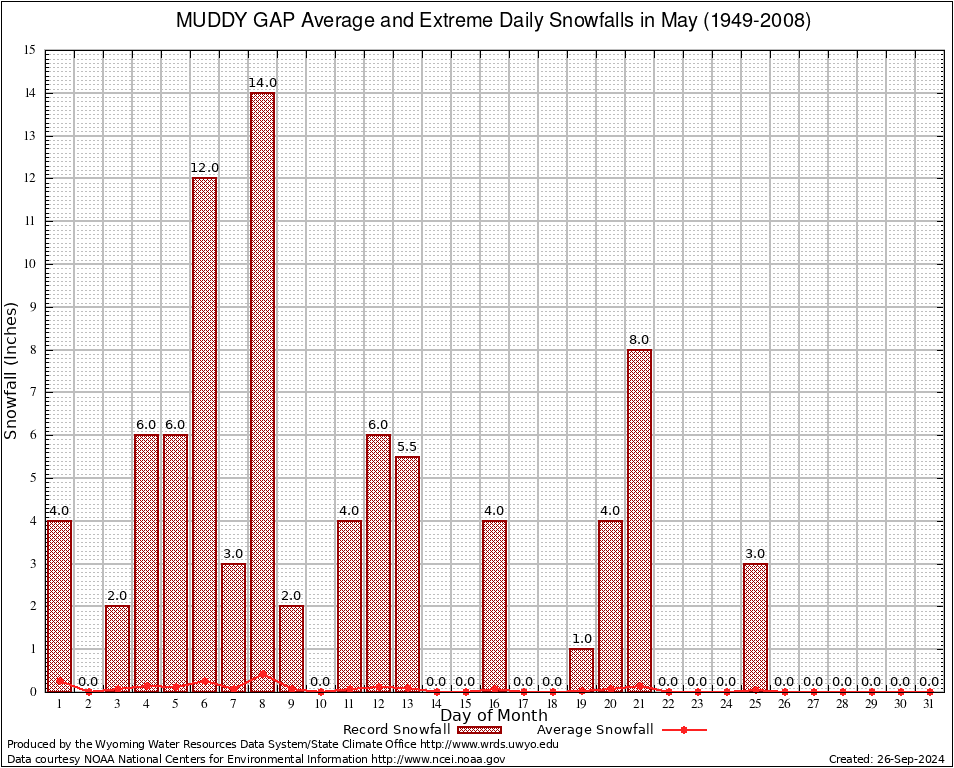 May Average and Extreme Daily Snowfall AMounts (1949-2008)