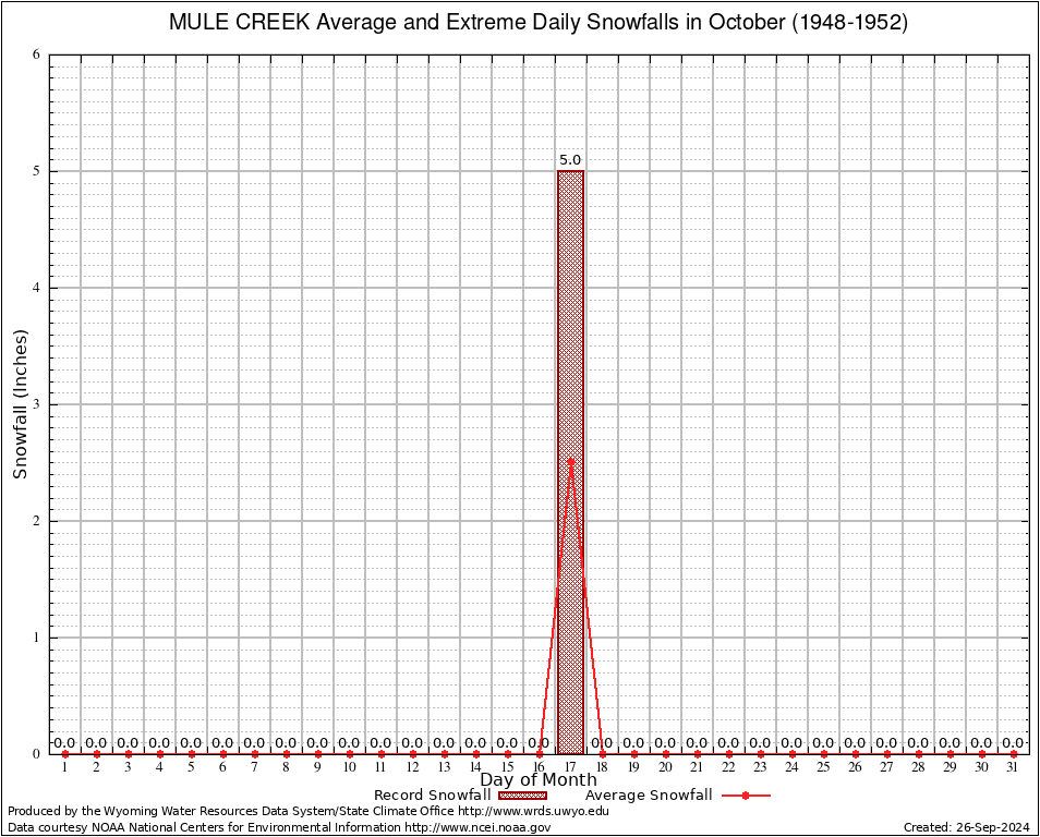 October Average and Extreme Daily Snowfall AMounts (1948-1952)