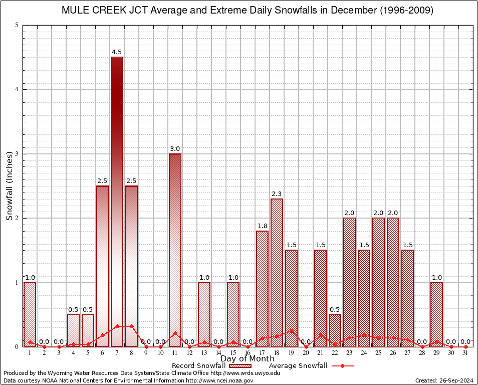 December Average and Extreme Daily Snowfall AMounts (1996-2009)