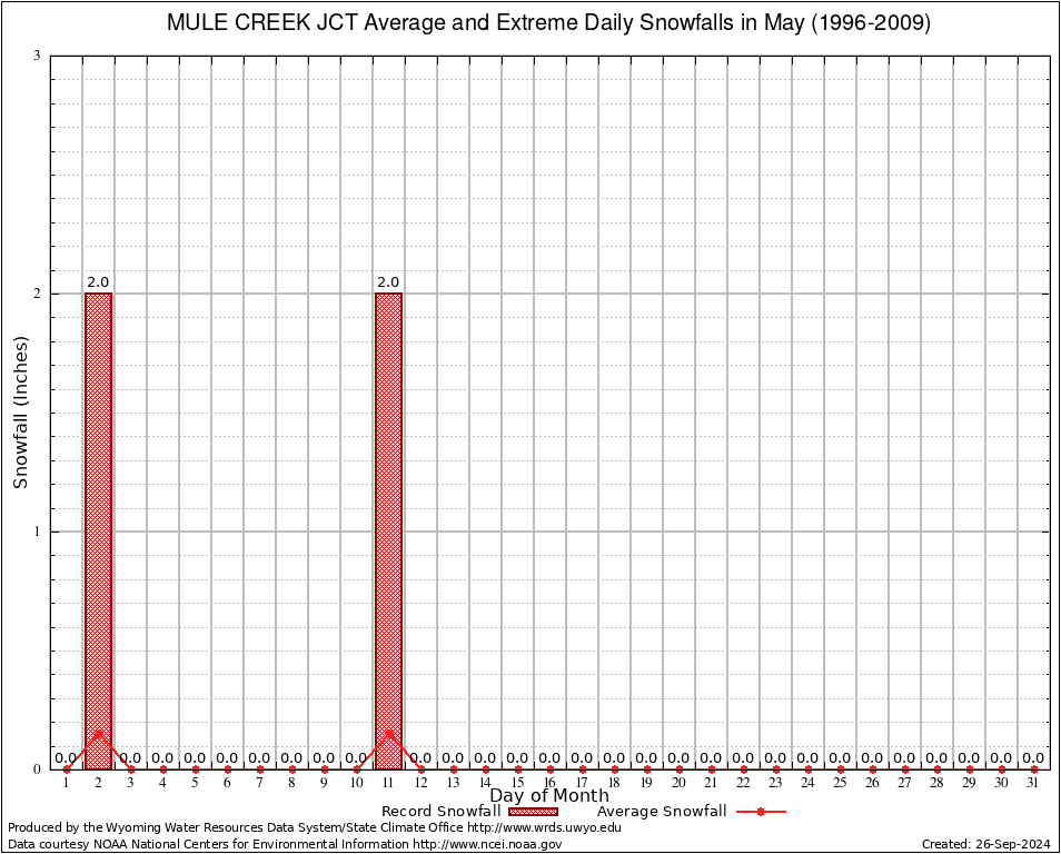 May Average and Extreme Daily Snowfall AMounts (1996-2009)