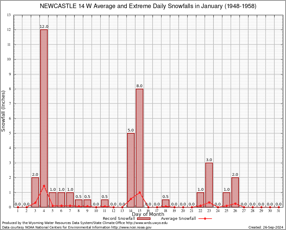 January Average and Extreme Daily Snowfall AMounts (1948-1958)