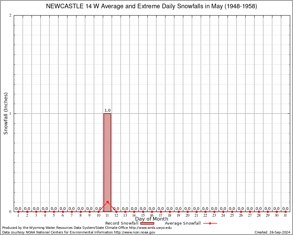 May Average and Extreme Daily Snowfall AMounts (1948-1958)