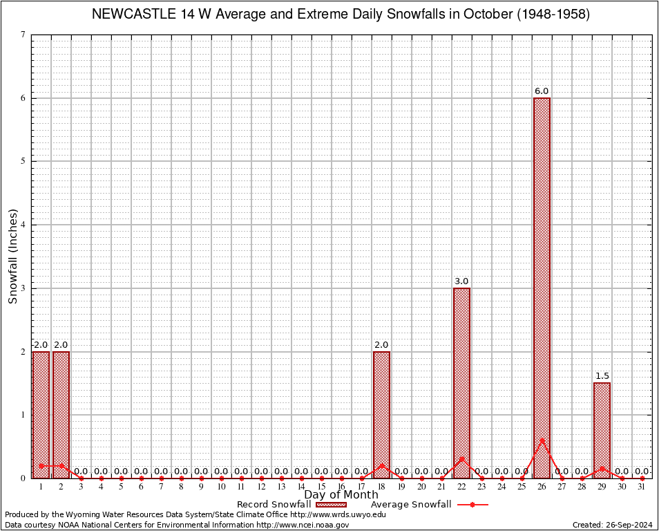 October Average and Extreme Daily Snowfall AMounts (1948-1958)