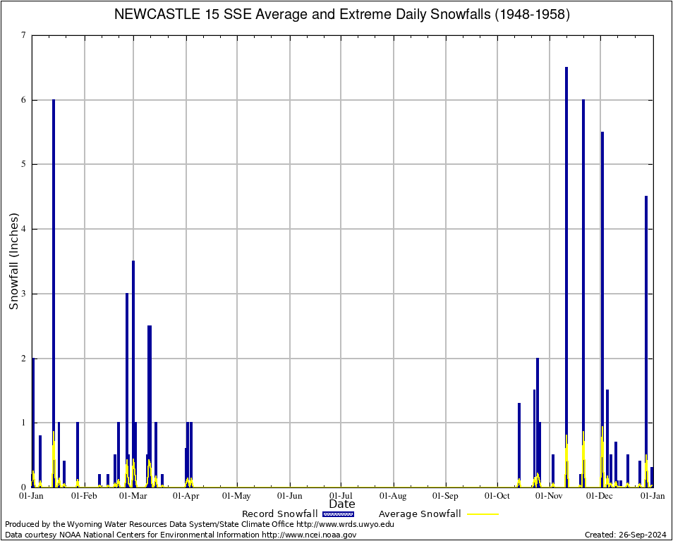Annual Average and Extreme Daily Snowfall AMounts (1948-1958)