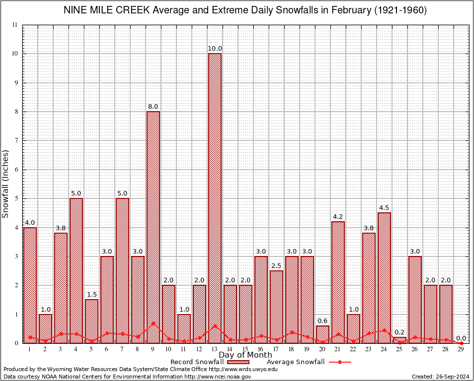 February Average and Extreme Daily Snowfall AMounts (1921-1960)