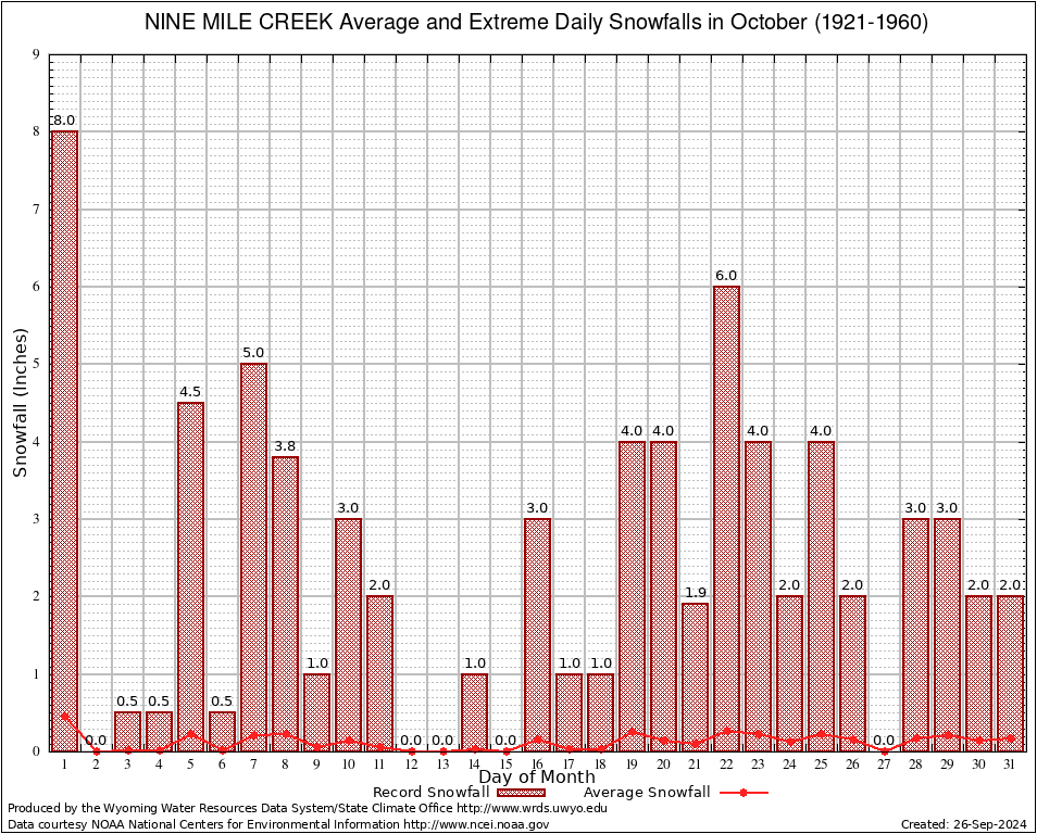 October Average and Extreme Daily Snowfall AMounts (1921-1960)