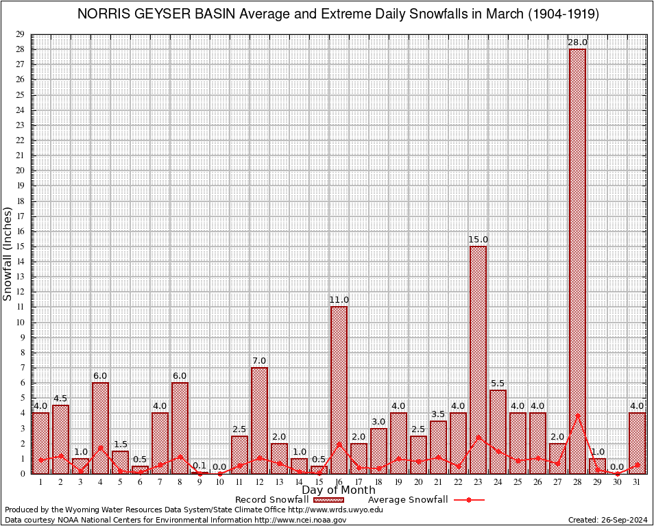 March Average and Extreme Daily Snowfall AMounts (1904-1919)