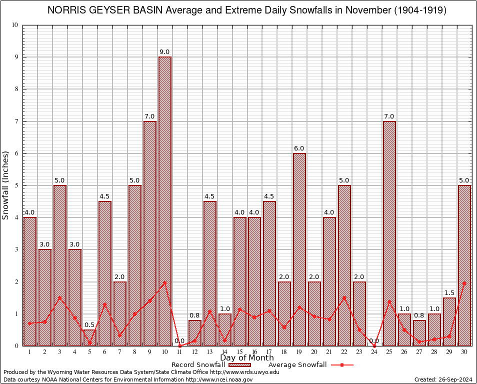 November Average and Extreme Daily Snowfall AMounts (1904-1919)