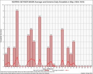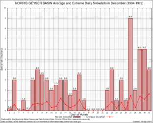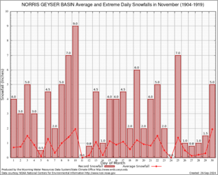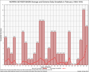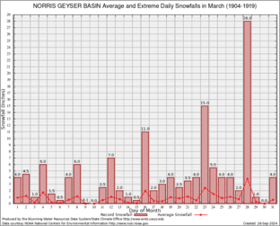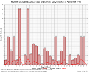 NORRIS GEYSER BASIN (486715) Record Extreme and Average Daily Snowfall (1904-1919) See Here for Other Stations