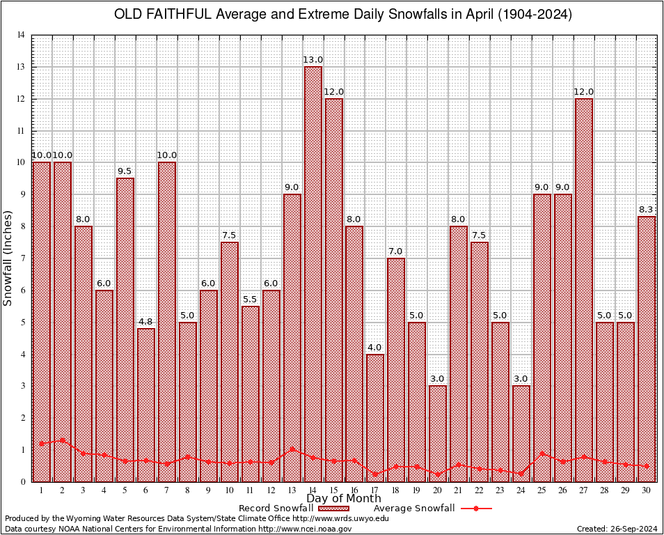 April Average and Extreme Daily Snowfall AMounts (1904-2024)