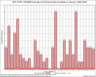 Record Extreme and Average Daily Snowfall (1989-2024)
