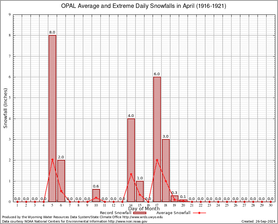OPAL (486865) April Average and Extreme Daily Snowfall AMounts (1916-1921) To index page for OPAL