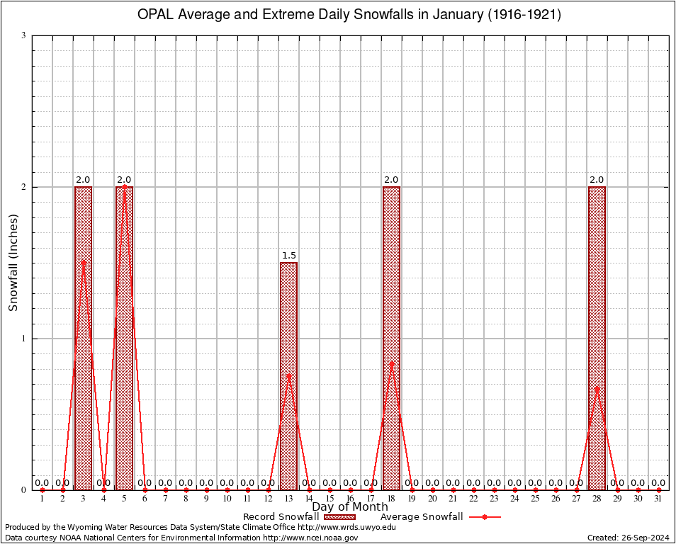 OPAL (486865) January Average and Extreme Daily Snowfall AMounts (1916-1921) To index page for OPAL