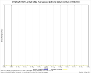OREGON TRAIL CROSSING (486875) Record Extreme and Average Daily Snowfall (1948-2024) See Here for Other Stations