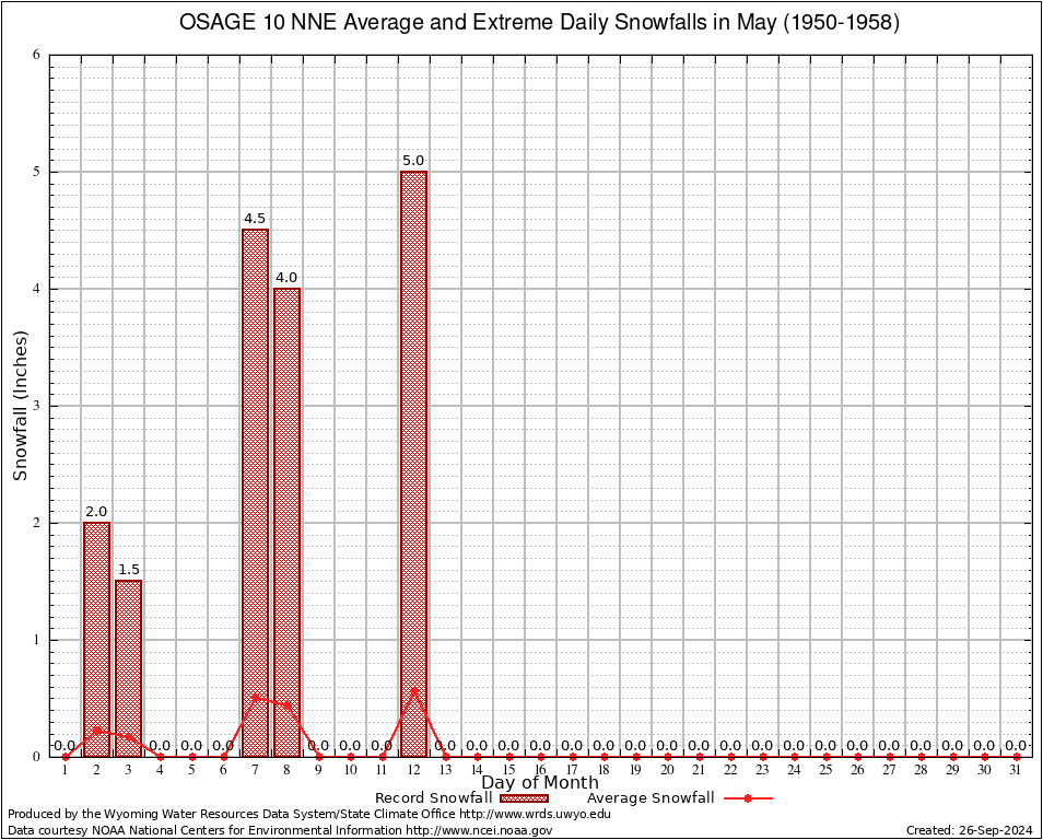 May Average and Extreme Daily Snowfall AMounts (1950-1958)