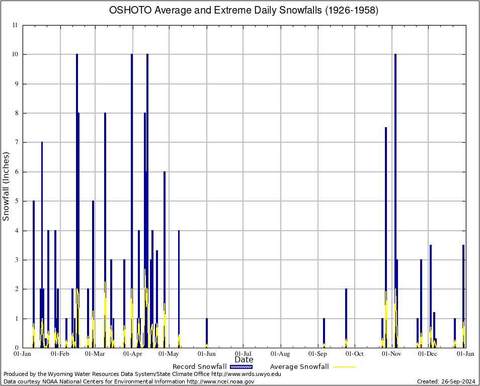 OSHOTO (486952) Annual Average and Extreme Daily Snowfall AMounts (1926-1958) To index page for OSHOTO