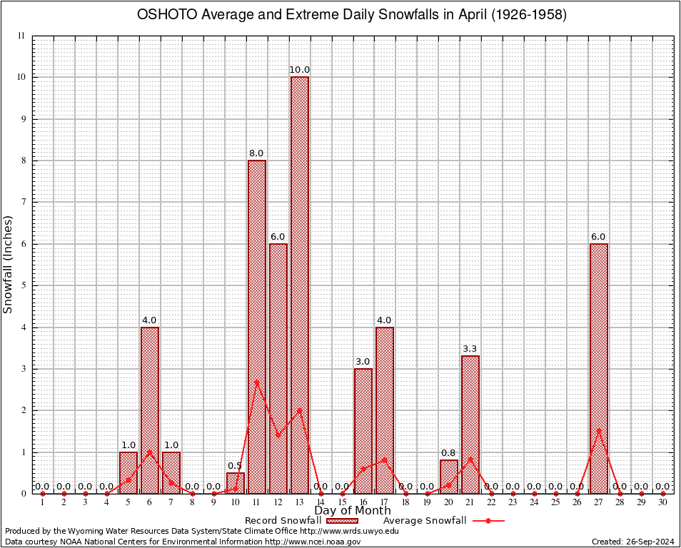 OSHOTO (486952) April Average and Extreme Daily Snowfall AMounts (1926-1958) To index page for OSHOTO