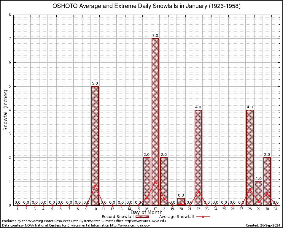 OSHOTO (486952) January Average and Extreme Daily Snowfall AMounts (1926-1958) To index page for OSHOTO