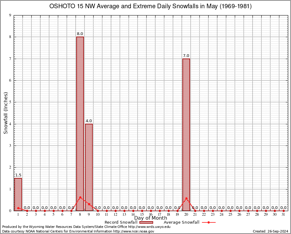May Average and Extreme Daily Snowfall AMounts (1969-1981)