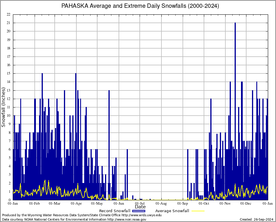 PAHASKA (487031) Annual Average and Extreme Daily Snowfall AMounts (2000-2024) To index page for PAHASKA