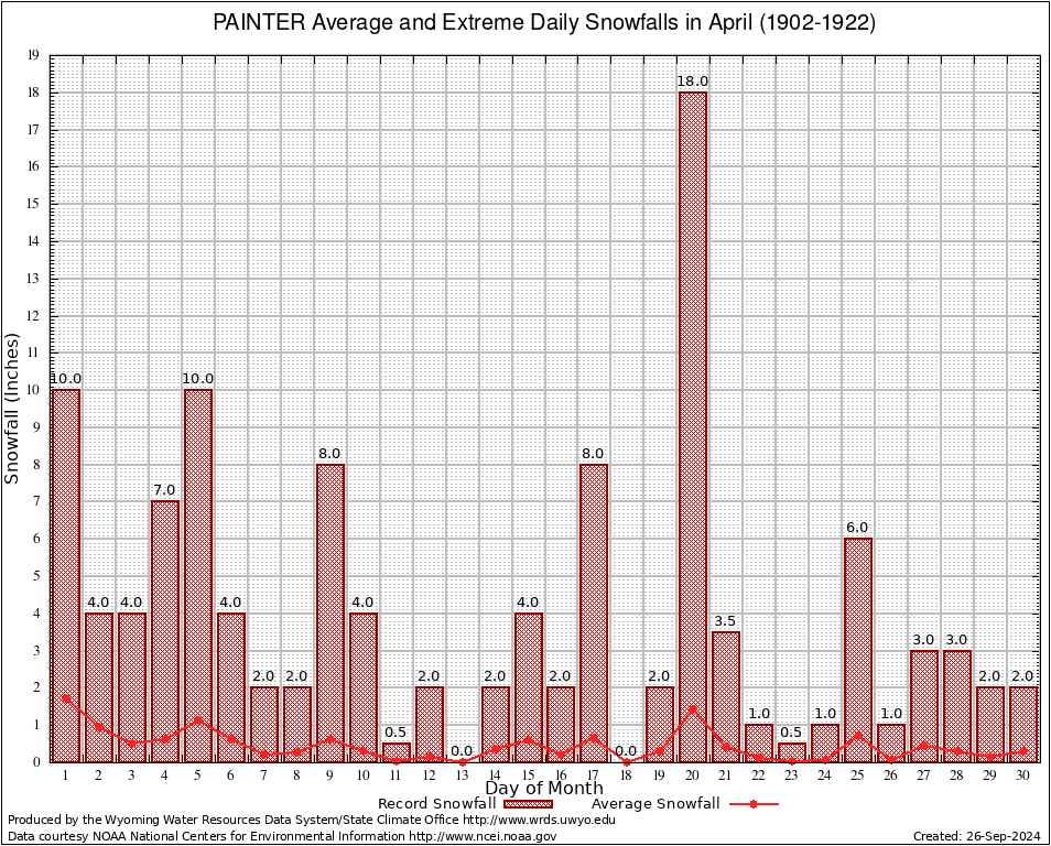PAINTER (487045) April Average and Extreme Daily Snowfall AMounts (1902-1922) To index page for PAINTER